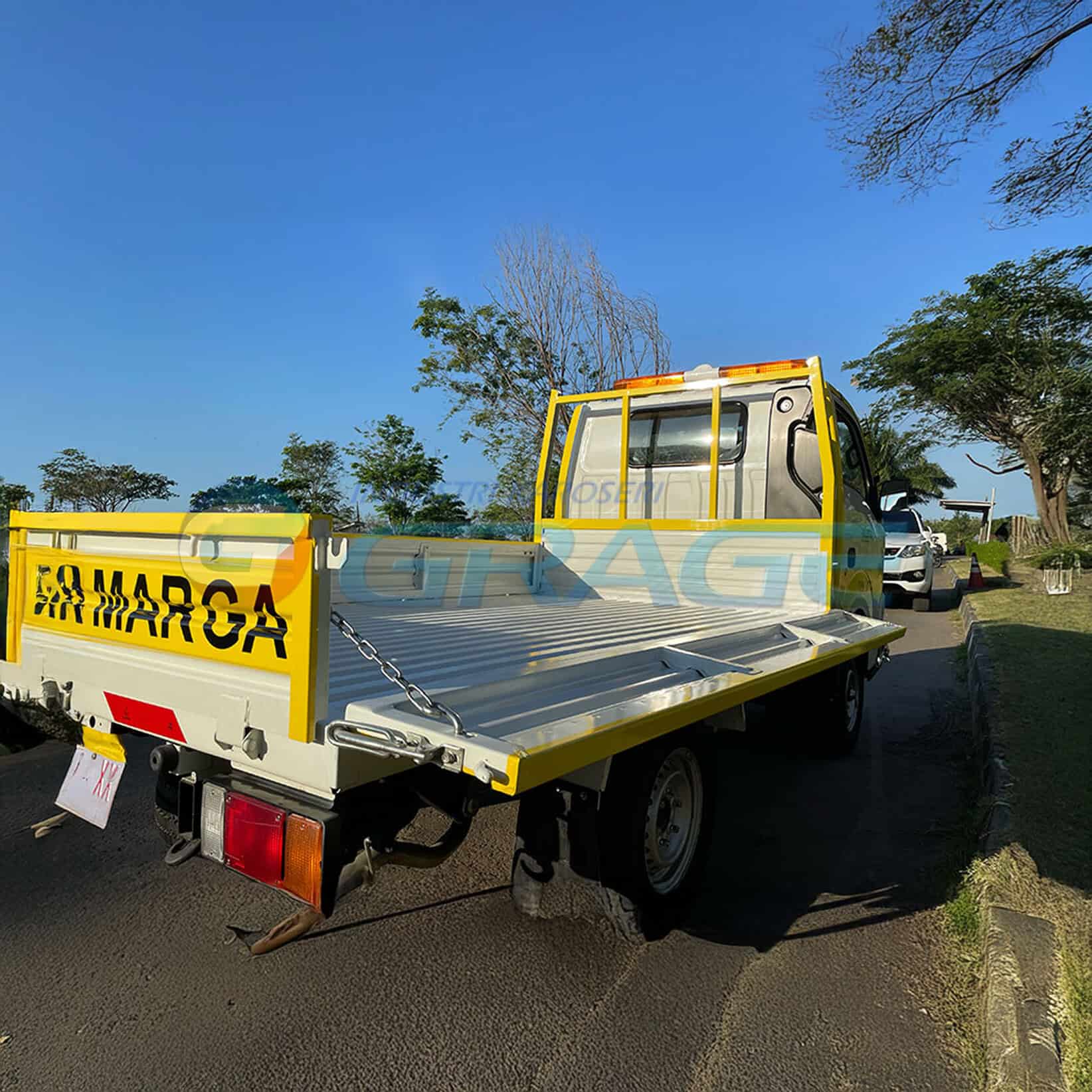 Unit kendaraan Pick up Three way akan dicat dan diberi lapisan anti karat yang mana semua material terpakai adalah menggunakan material kelas satu. Superstruktur dicat warna sesuai permintaan dan cabin standard chassis.